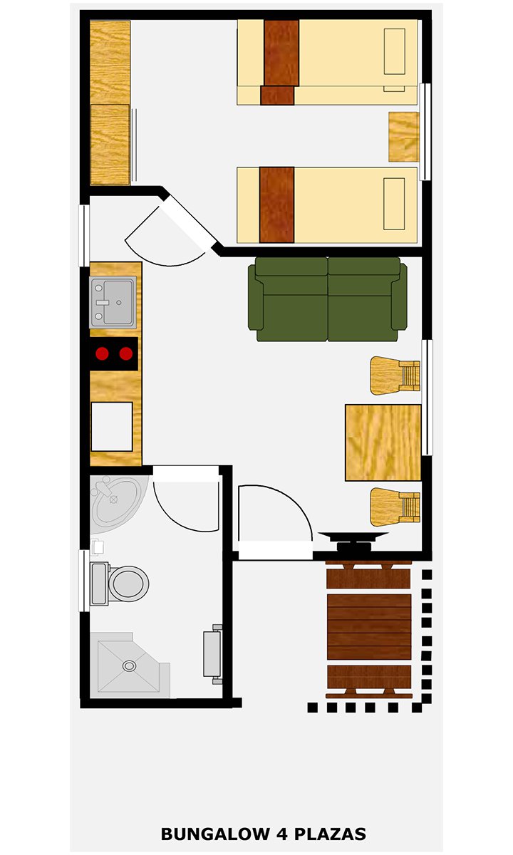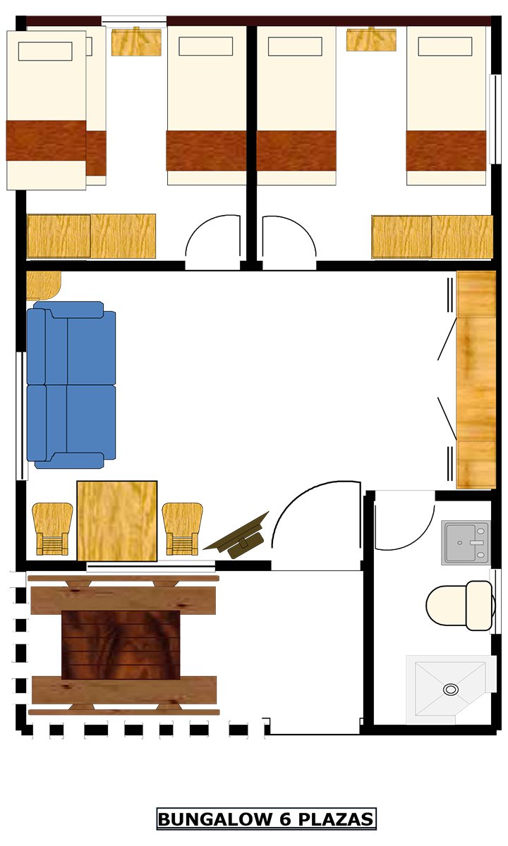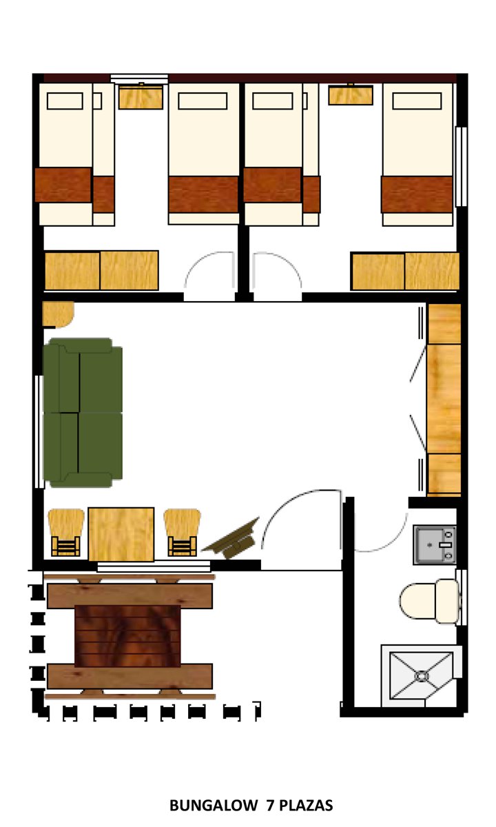 Disponemos de bungalow sostenibles para 4, 5, 6 o 7 personas, construidos con materiales respetuosos con el medio ambiente. Equipados con calefacción, sábanas y toallas de baño, televisión, microondas, frigorífico, vitrocerámica y todos los accesorios de camping para el día a día de su estancia.