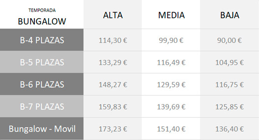 Si vienen acompañados de animal de compañía, el precio de los bungalow se incrementará en 3,20 €/noche
