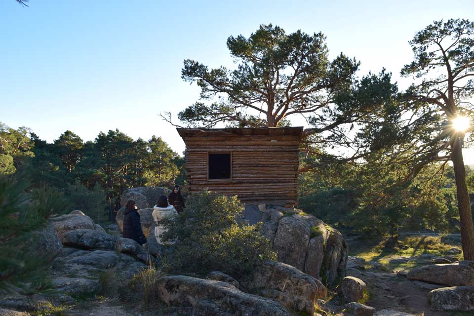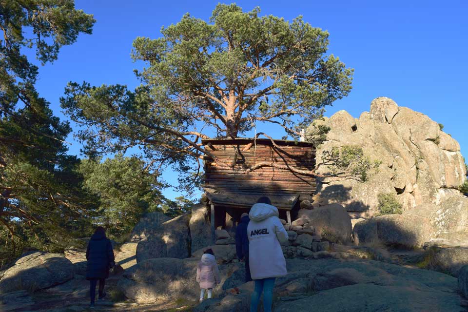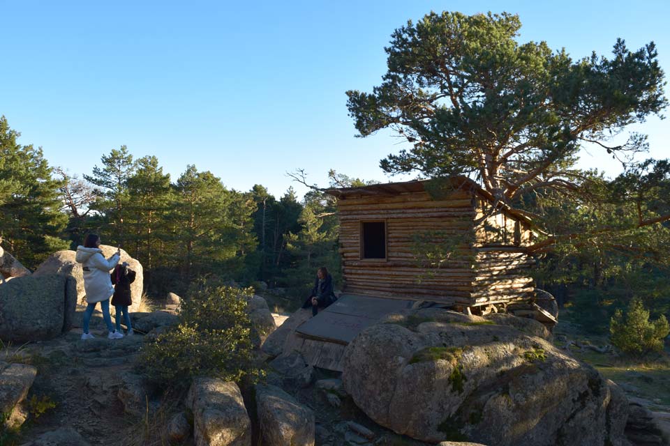Siguiendo por el camino unos 100m, a la derecha, arranca un pequeño sendero que nos llevará a nuestro destino final, la Casa del Arbol, refugio de madera construido en un árbol junto a un pequeño rocódromo que nos servirá para iniciarnos en la escalada, apta para chavales de corta edad.