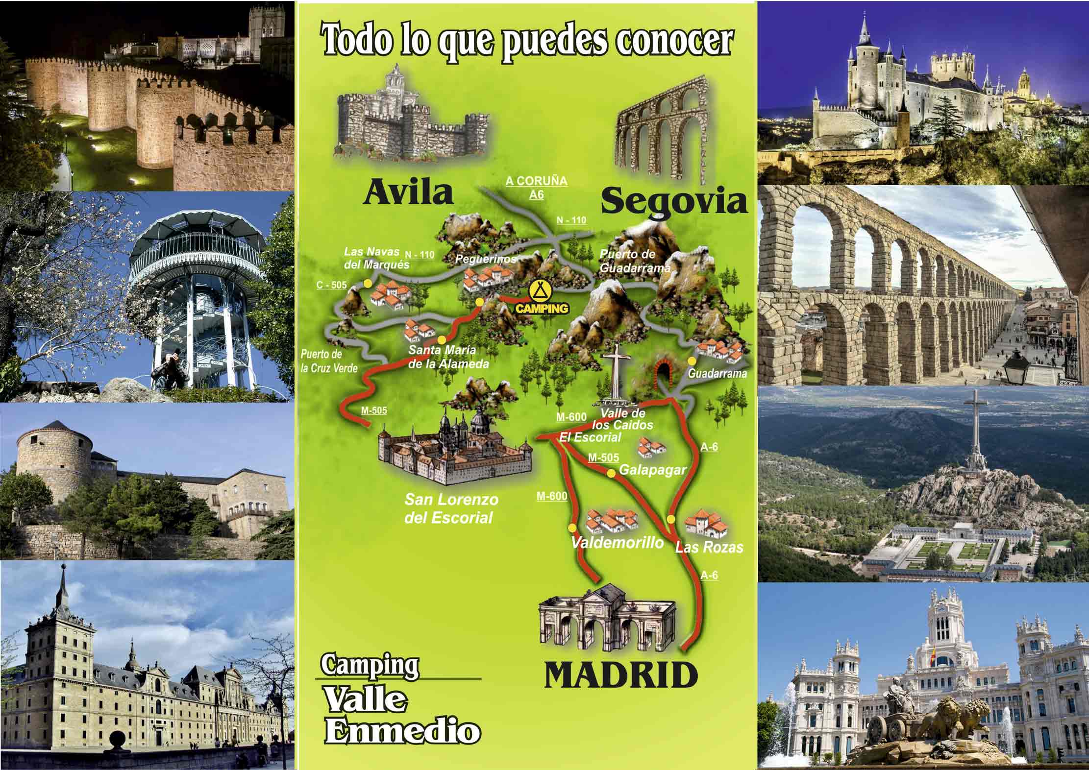 Además de un ser un paraíso natural, desde el camping podrás visitar varias ciudades con un gran valor cultural: Ávila, Segovia, El Escorial, El Valle de los Caídos, Las Navas del Marqués.